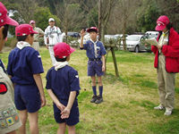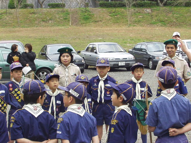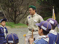 課題はカブスカウト賛歌です。組長の指揮兼ソングに引っ張られ何とかクリア!こうし君ありがとう(TT) |