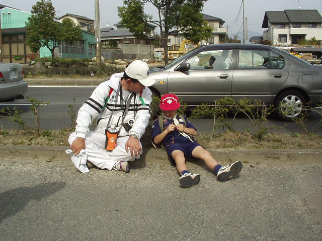 ここはトイレポイント。「坊やおじさんといいとこ行こうか?」と誘う?TAKAOパパ。 |
