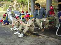 ソングを見守る小川DCと梅野DL。 |