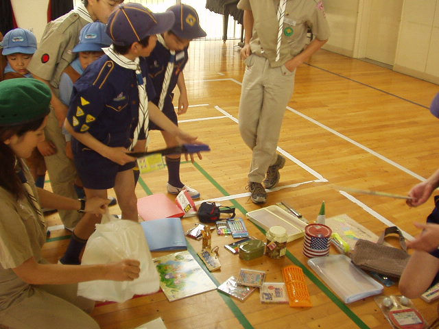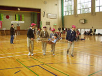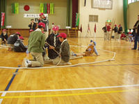 帽子渡し、目隠し競争、綱引き、タンカ救助など