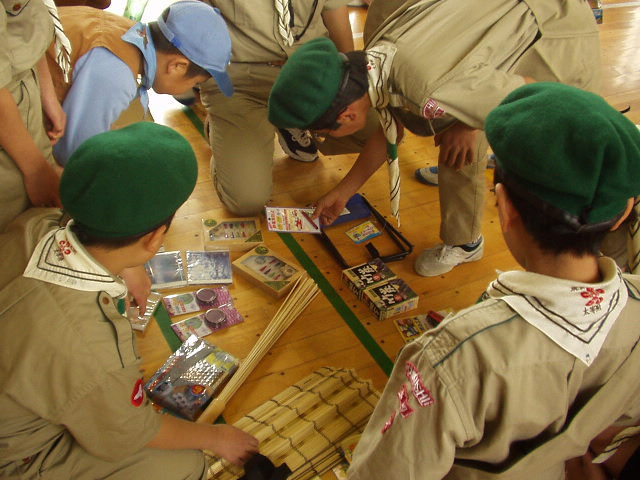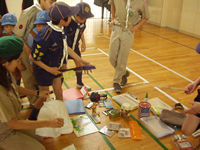 ビーバー、カブ、ボーイ、保護者が4つのチームに分かれて