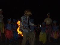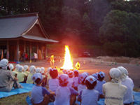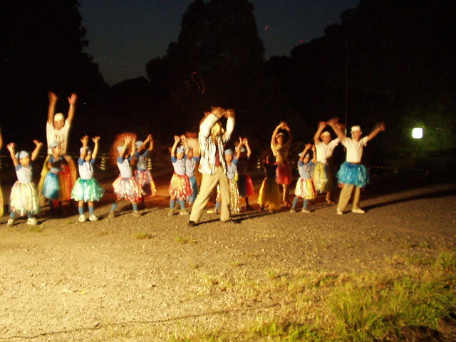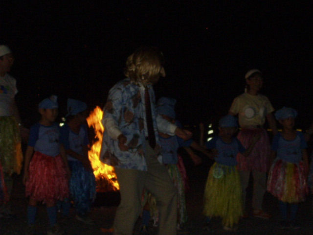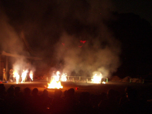 あたりも暗くなり、火の神が登場していよいよキャンプファイヤーに火がはいりました。