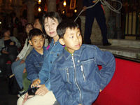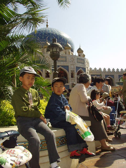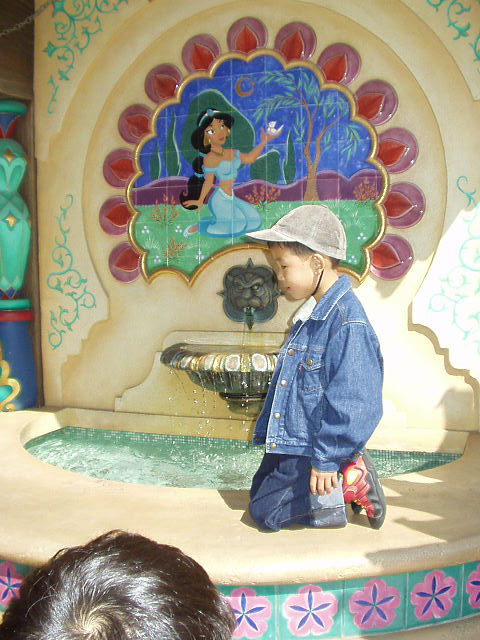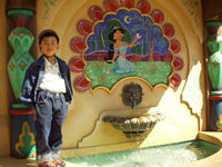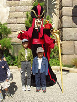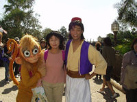 アラビアンコーストにあるマジックランプシアターはFASTPASSを取って待ちました。 | 魔法使いのおじさんはアニメそっくりに態度が横柄でした。 | ガイジンに弱いママは美形のアラジンにうっとり。 |