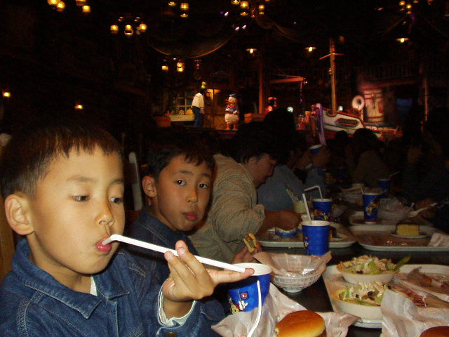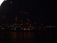 偶然夜に乗る事になりましたが夜景がキレイで意外と狙い目です。 | 写真では伝えられないのが残念です。 | 夕食はケープコッド・クックオフでボードビルダーショーを見ながら(レジの右側ですのでお間違いなく)。 |