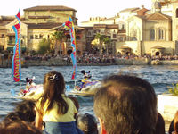ハーバーの少し左手がベストポジションかな。 | 続いてポルト・パラディーゾ・ウオーターカーニバル。 | 1時間半待ってやっとゴンドラに。 |