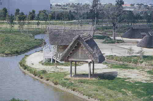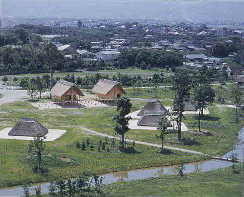 集落の中央部には大型の掘立柱建造物跡が発見されるなど、中国の歴史書にいう「クニ」を構成する集落の構造を良く示しています。すぐ北東に隣接した「平塚山の上遺跡」などと併せて、当時のこの地域の拠点的集落と考えられています。 |