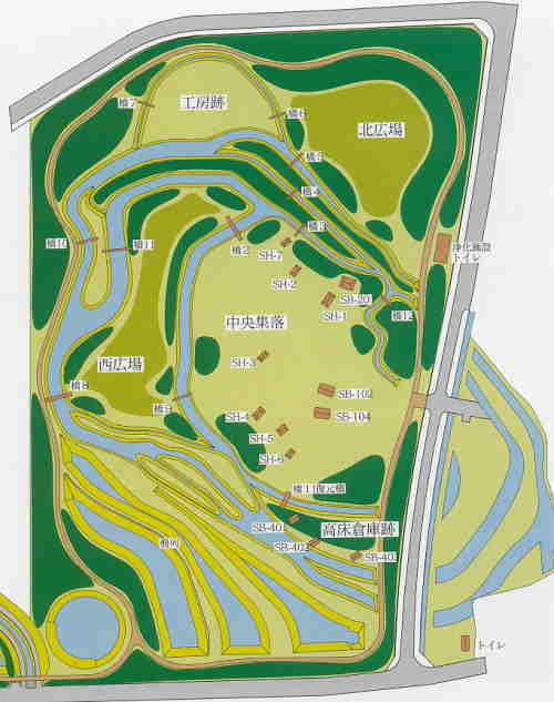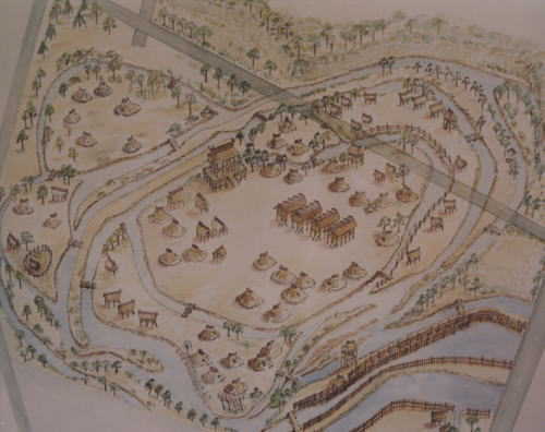 多重の環濠は、集落の防衛・排水・区画など多様な機能を有したものと考えられています。南西部で確認された5条の柵列跡やそれらに沿って深くて広い外濠(6条目は深さ約2m、幅約20m)は、強固な防衛体制を示しており「倭国大乱」前後の状況を伝えています。