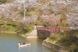 丸山公園の名で市民に親しまれている甘木公園は、明治35年ごろ琴平山に続く丸山の頂上を平らにして、公園つくりが始まりました。 県下屈指の桜の名所、4000本の桜の一部はライトアップされ、夜空に浮かび上がります。つつじ 5000本、花菖蒲のほか、モミジ谷や藤棚があります。