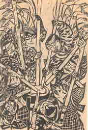 山間の要地、上座郡 黒川村は英彦山座主ゆ かりの地、黒川庄高木 神社に今に伝わる宮座 の儀式 口に柴かみ餅 をつく。杉の古木に囲 まれた氏神様の村祭り。 |