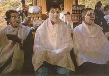| 毎年12月2日に大山の大山神社で行われます。 新米の米を水で溶いて顔に塗りつけ、そのつき具合 で次の年の豊作を占うというもの。300年以上の伝 統を持つ奇祭です |