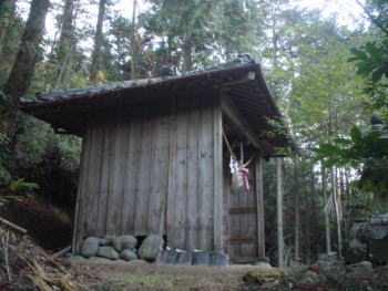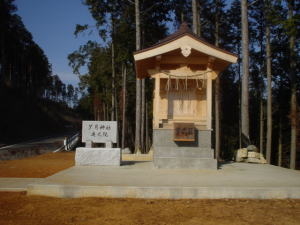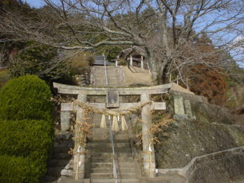 | 慶応4年(1868)が明治元年と変わる、この年、真竹、小向内の人たちによって宮地嶽三神が勧請された。 社地は真竹山の上にあり、290の石段を上りつめたところに、二間四面の神殿と二間に三間の拝殿がある。 神殿には三個の石祠が安置されてあり、中央は宮地嶽三神ど息長足姫、右は勝村大明神、左は勝頼大明神である。 息長足姫とは神功皇后のことであり、勝村、勝頼はその家来であるという。近くに真竹山城跡あり、秋月種実の臣野手讃岐の居城であったと云われている。空堀の跡あり。 |