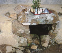 (閼伽井)などが現存しているが、『筑前国続風土記附録』1789(寛政7)年のさし絵に描かれた柴宿(こもり堂)はすでにないが、現行者堂の後方の一段低い平地あたりにあったと思われる。なお、さし絵にある行者堂の位置は現在地とはなぜか違っている。多分、建て替えられたのだろう。記録によれば、1703(元禄16)年以降、黒田候より藩財をもって営進されるようになったという。 |