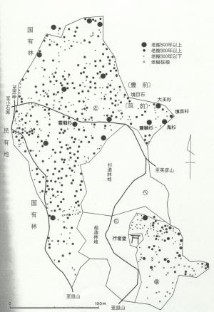 行者杉成立位置図 |