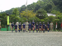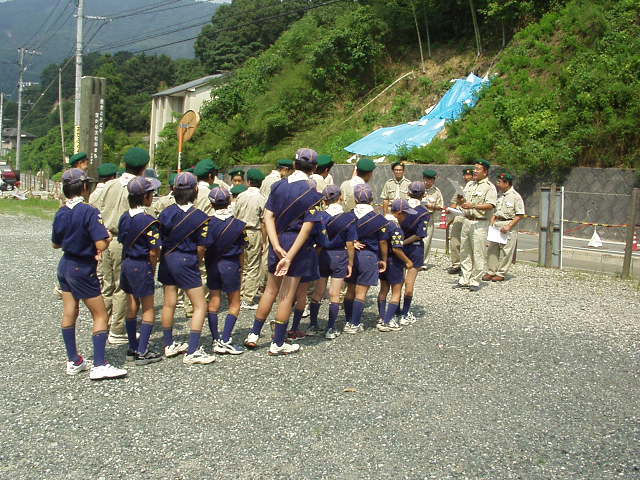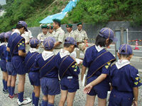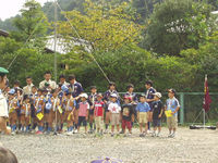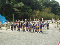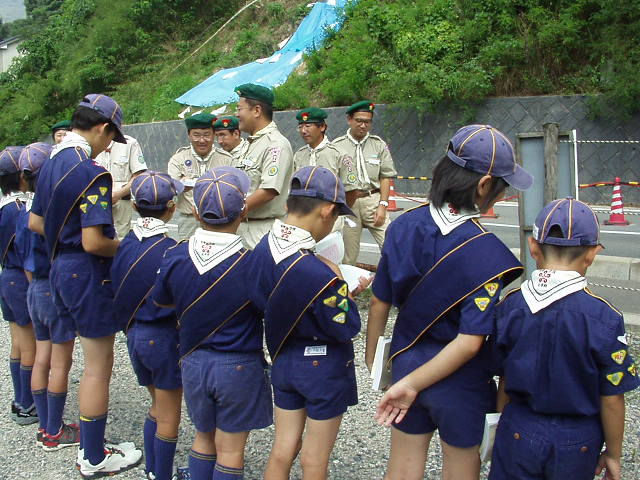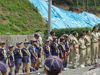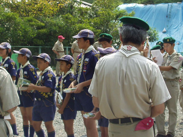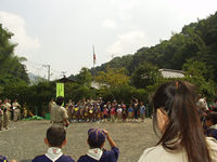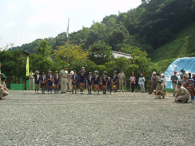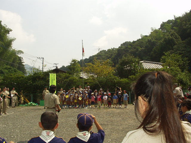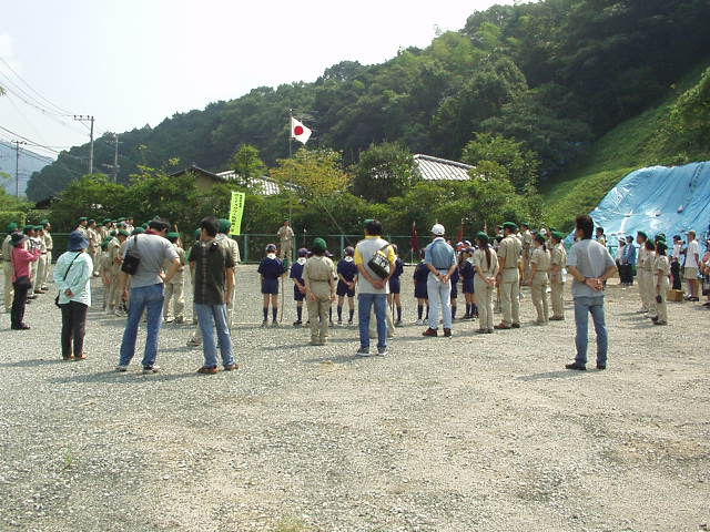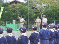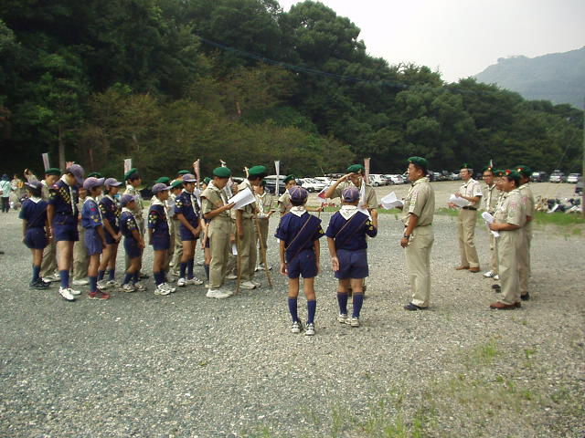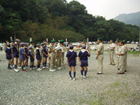 最初に隊長交代式。 TAKEパパはビーバー隊の隊長、笹田隊長はボーイ隊の副長へ |
