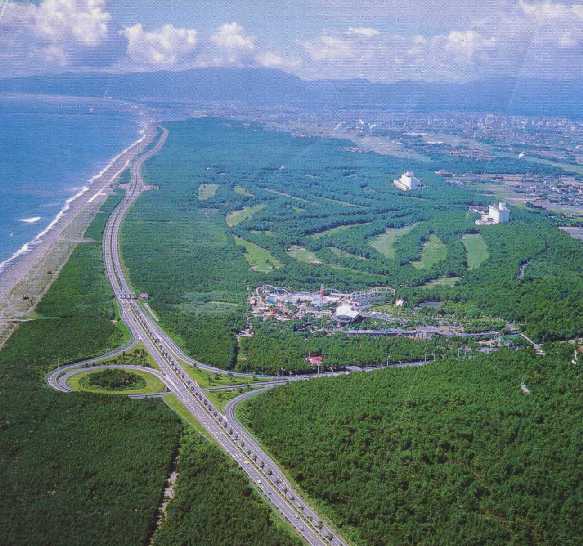 広大な松林の中にフェニックス自然動物園の観覧車、その上にはフェニックストーナメントが