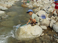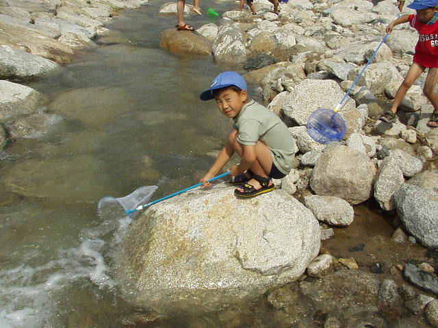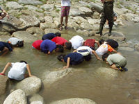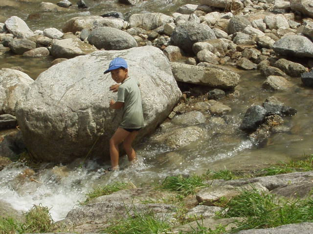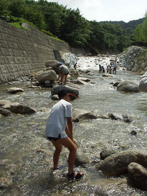 次回のキャンプで絵を描く為の石を探した後は顔を水につけて我慢比べがありました。