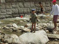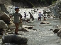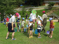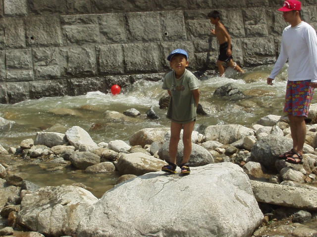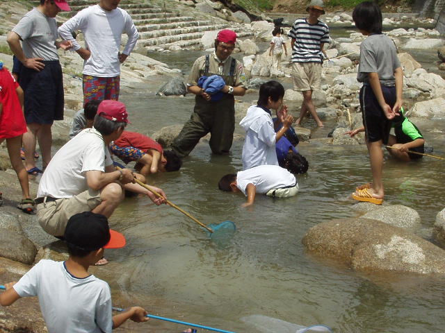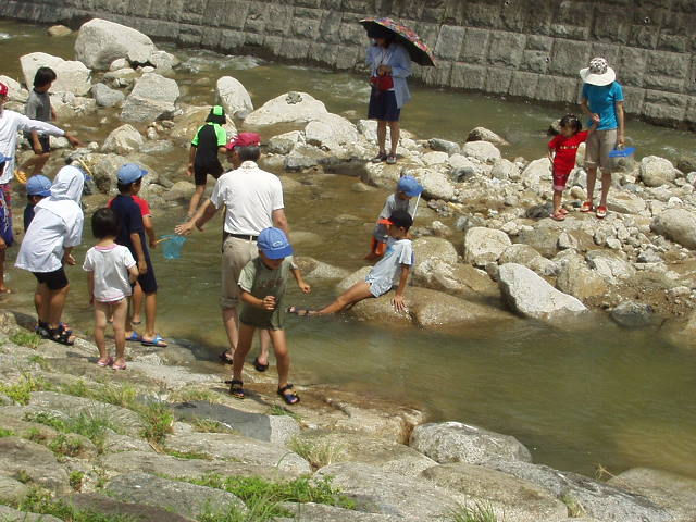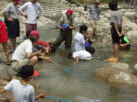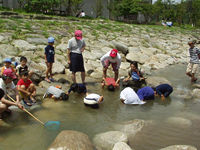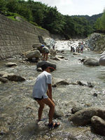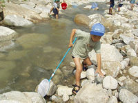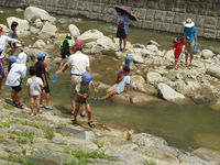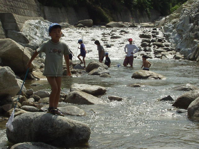 今日の活動は川遊びです。長かった梅雨も明け、好天に恵まれましたが普段は