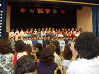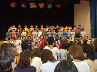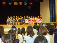 開始直前に雨が振り出したのでホールで歌を歌いました。最初は年少さんです。 |